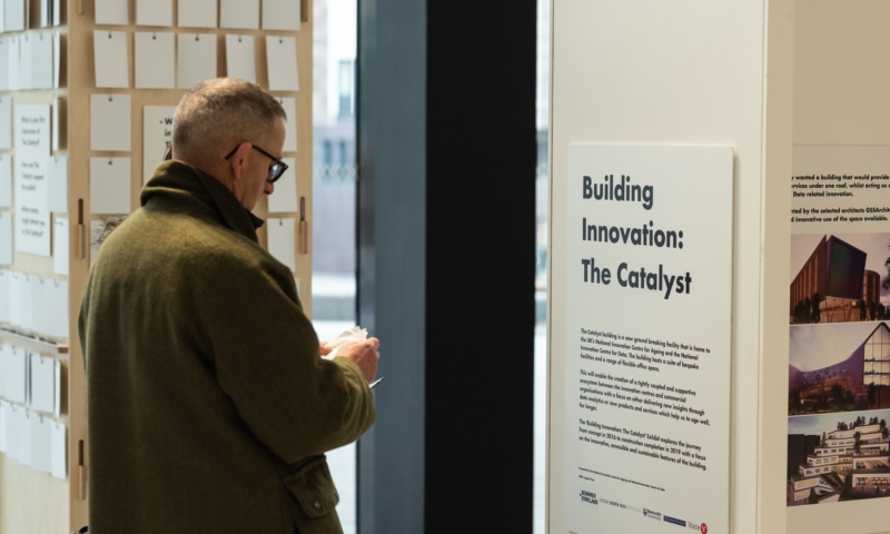 We are working with National Innovation Centres for Data and Ageing to curate and install Exhibitions to showcase the building and attract visitors to the displays and associated events, using mixed media and technology such as apps. Building Innovation: The Catalyst showcasing the innovation and collaboration in designing and erecting the building opened in December 2019, Joy, co-created with a group of brilliant women who gave up their time to share their moments, days, weeks and lifetimes of joy. The multimedia exhibition comprises photographic portraits, short film, JOYful artifacts and photographic collages opened in March 2020 with an event to celebrate International Womens Day.
